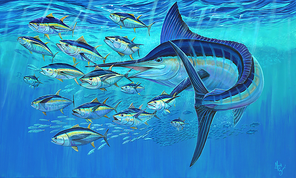 Blue Marlin pursuing Yellowfin Tuna.