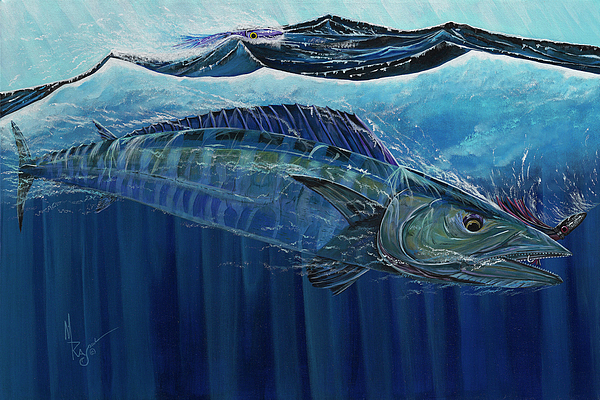 A wahoo, hitting a trolling bait.
